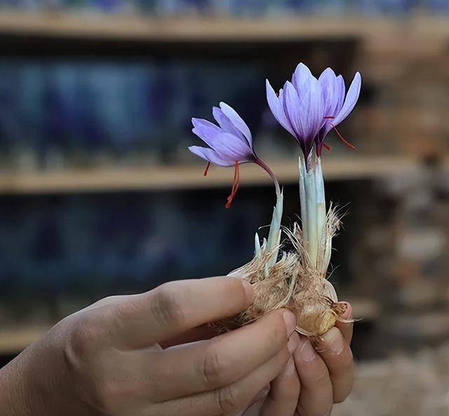 藏红花采用种球繁衍,种球有点像小洋葱,每年10月份播种,11月份开花,花期出格短,只要短短10天摆布,必需正在这期间完成采摘,否则花丝会枯萎,得到价值。